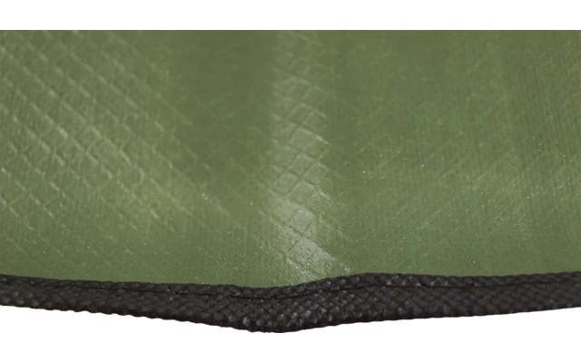 Die ultraleichte und reißfeste Picknickdecke verfügt über eine gewebeverstärkte Einlage. Die Unterseite ist wasserdicht und reflektierend beschichtet, die Decke hat somit eine wärmeisolierende Wirkung. Der Rand ist mit einem Band eingefasst und doppelt vernäht. Mit den 4 Ösen kann die Picknick Decke am Boden fixiert werden. Sie kann auch als Zeltunterlage, Tarp oder Notfalldecke verwendet werden.
