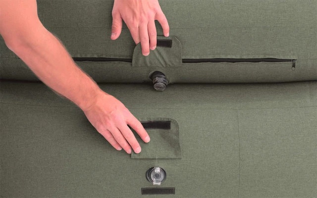 Das aufblasbare Sofa Aberdeen Lake ist besonders bequem und hat ein geringes Packmaß. Der dunkelgrüne Farbton, die abgerundeten Armlehnen und die Rückenlehne laden zum Entspannen ein. Druch die einfache Ventilbedienung ist ein schneller Aufbau möglich.