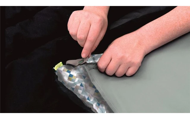 Ein herausnehmbarer Baumwoll-Innenbezug, dessen Befestigungsriemen durch die Befestigungsschlaufen in den Ecken der Schlafsäcke gefädelt und per Druckknopf geschlossen werden und der sich somit mühelos ein- und ausknüpfen lässt. Passt in alle Outwell Doppelschlafsäcke.