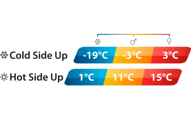 - Temperaturlimit: -3° cold side up/ 11° warm side up