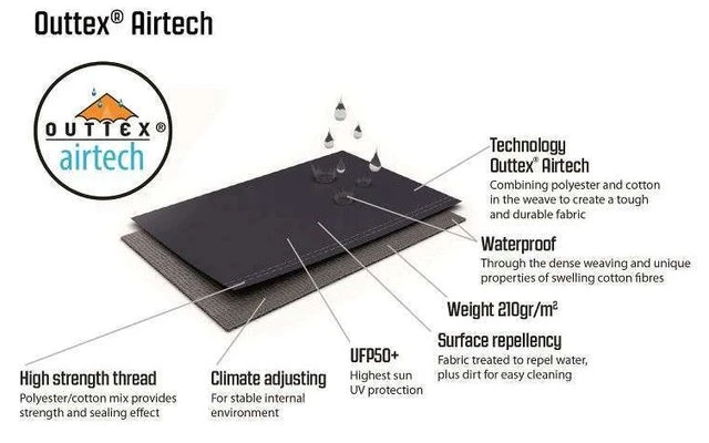 Die großartigen Eigenschaften des strapazierfähigen technischen Baumwollgewebes dieses Zelts machen es zur idealen Wahl für anspruchsvolle Familiencamper und Paare, die besonders bei heißem Wetter zusätzlichen Platz für unbeschwertes Camping wünschen.
