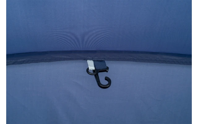 An der Vorderseite der Schlafkabine befinden sich praktische Aufbewahrungsfächer, in denen man z.B. Zeitschriften, Zahnbürsten, Sonnenbrillen und Handys aufbewahren kann. An den beiden Seiten des Zeltes befindet sich jeweils eine Dauerventilation mit Abspannfunktion, damit auch die Schlafbereiche immer mit genügend frischer Luft versorgt sind.